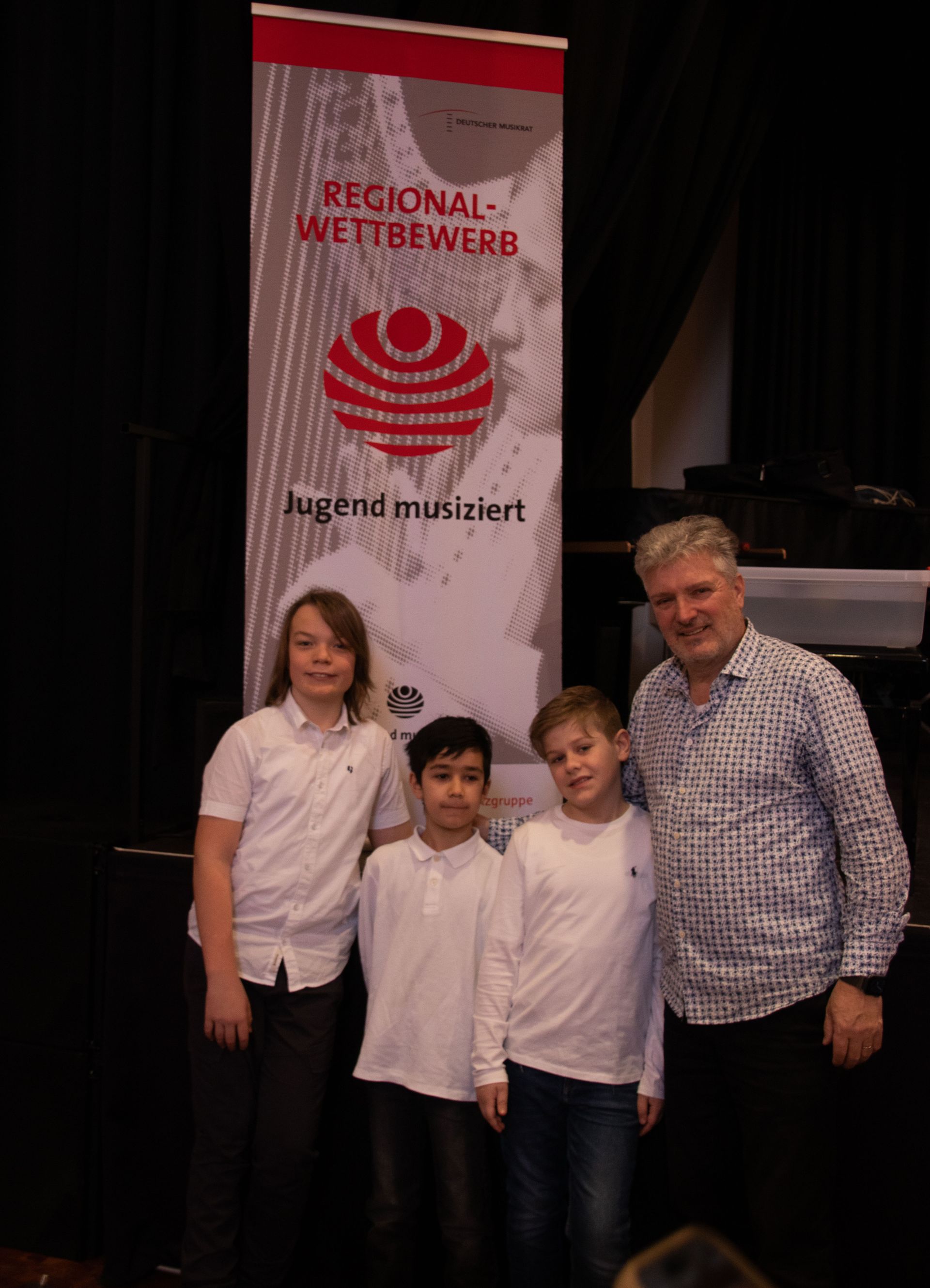 Ensemble des Musikervereins Eislingen bei Jugend musiziert. Das Schlagzeugensemble des Musikvereins Eislingen stellte sich mit ihrem Schlagzeuglehrer Klaus Mann der dreiköpfigen Juri im Alten E-Werk in Göppingen. Am frühen Samstagmorgen mussten die drei Jugendlichen Elyas Kumasci, Marcel Widmann und Noah Eisele bereit ihre Instrumente aufbauen. Nachdem Aufbau konnte noch kurz durchgeatmet und noch ein paar Takte angespielt werden. Die Anspannung stieg als die Juroren die Teilnehmer und die Eltern begrüßten. Kurz nach 10 Uhr war es dann für die Jungmusiker soweit. Sie konnten ihre drei Auswahlstücke der Jury vortragen. Begonnen hat es mit „Bandelier“ von Maxine Lefever. Danach folgten noch „Yes open the door“ von Gerard Berlioz und zum Abschluss wurde von Joachim Schöppe „Marching Rock“ gespielt. Die Uhr hat 12 geschlagen als das Ergebnis verkündet wurde. Das Ensemble um Klaus Mann bekam einen 1. Preis mit 22 Punkten. Der Schlagzeuglehrer war von der Leistung der Jungs begeistert, da dies ihr erster Auftritt als Ensemble bei Jungend musiziert war.